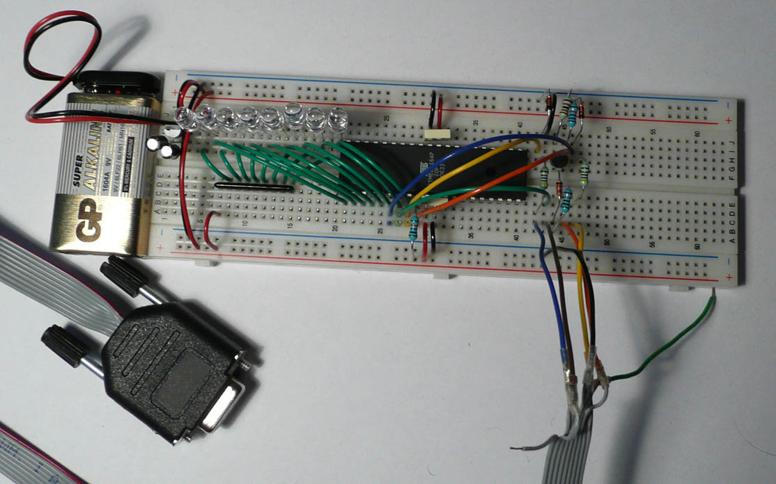 Debug infoIf you get:avrdude -p atmega164p -P com1 -c ponyser -V -U flash:w:test1.hex avrdude: AVR device not responding avrdude: initialization failed, rc=-1 Double check connections and try again, or use -F to override this check. avrdude done. Thank you. make: *** [program] Fel 1 Compilation exited abnormally with code 2 at Fri May 30 02:40:40 Then you might need to lessen the load (increase the resistance) on your ISP pins (MOSI/MISO/etc). e.g. in my case from 150 Ohm to 1k. E.g. MISO,MOSI.. pins to LED's to 150 Ohm resistors to VCC won't work if you try to program at 5V, but will work if you run at 3V instead. And then again, if you change to 1k Ohm resistors it will work at 5V. avrdude: NOTE: FLASH memory has been specified, an erase cycle will be performed To disable this feature, specify the -D option. avrdude: erasing chip avrdude: reading input file "test1.hex" avrdude: input file test1.hex auto detected as Intel Hex avrdude: writing flash (260 bytes): Writing | ################################################## | 100% 0.70s avrdude: 260 bytes of flash written avrdude done. Thank you. Compilation finished at Fri May 30 02:52:59 |