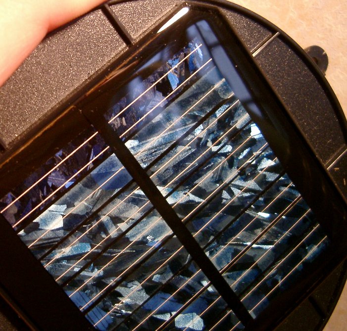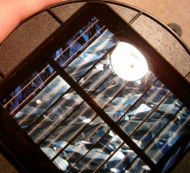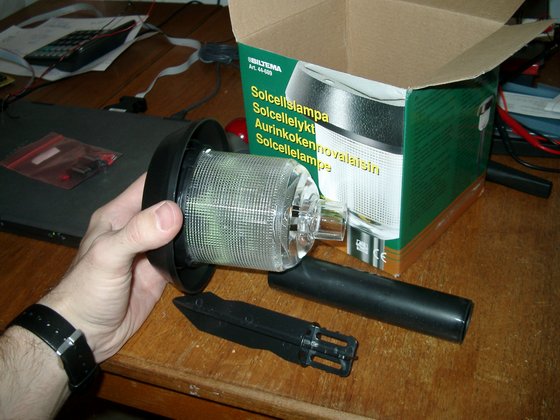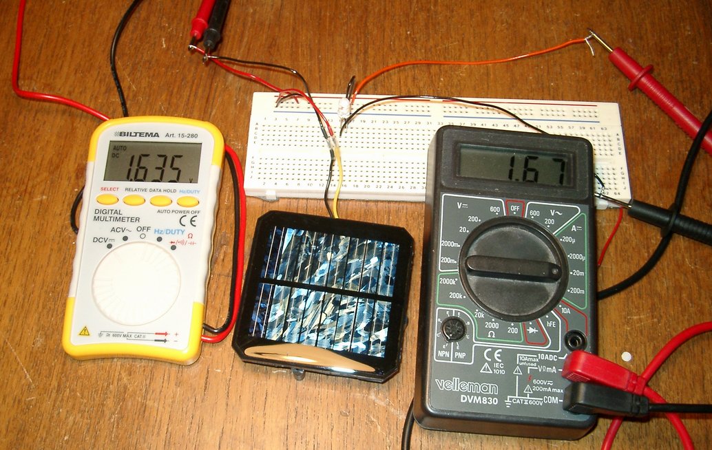 Test setup: 60W 230V ordinary lamp (Novaline) in white reflector 36cm from bulb surface to cell |